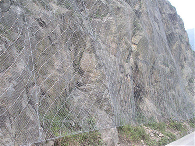SNS邊坡防護網(wǎng)系統(tǒng)的常用規(guī)格:[鋼柱(間距10M),帶消能環(huán)的∮16雙支撐繩和∮16"人"字形上拉錨繩(每跨6個消能環(huán)),∮16側(cè)拉錨繩(單繩),◇/08/200/4*5㎡鋼絲繩網(wǎng),縫合繩,格柵網(wǎng)。 材質(zhì):鋼絲繩網(wǎng)、普通鋼絲格柵(常稱鐵絲格柵)和TECCO高強度鋼絲格柵 。構(gòu)造:前兩者通過鋼絲繩錨桿和/或支撐繩固定方式,后者通過鋼筋(可施加預(yù)應(yīng)力)和/或鋼絲繩錨桿(有邊沿支撐繩時采用)、專用錨墊板以及必要時的邊沿支撐繩等固定方式 。產(chǎn)品特性:SNS邊坡防護網(wǎng)作用原理上類似于噴錨和土釘墻等面層護坡體系,但因其柔性特征能使系統(tǒng)將局部集中荷載向四周均材質(zhì):鋼絲繩網(wǎng)、普通鋼絲格柵(常稱鐵絲格柵)和TECCO高強度鋼絲格柵 勻傳遞以充分發(fā)揮整個系統(tǒng)的防護能力,即局部受載,整體作用,從而使系統(tǒng)能承受較大的荷載并降低單根錨桿的錨固力要求 。被動防護系統(tǒng):材質(zhì):鋼絲繩網(wǎng)、支撐繩和減壓環(huán),構(gòu)造:由鋼絲繩網(wǎng)或環(huán)形網(wǎng)(需攔截小塊落石時附加一層鐵絲格柵)、固定系統(tǒng)(錨桿、攔錨繩、基座和支撐繩)、減壓環(huán)和鋼柱四個主要部分構(gòu)成。